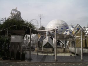Built in 1987, this cultural hub is a testament to her ability to create dynamic and fluid spaces that resonate with the community. The build features a mixture of various forms, including two domed structures and a scattering of hut-like forms that resemble flowers blooming and defy traditional architectural arrangement.